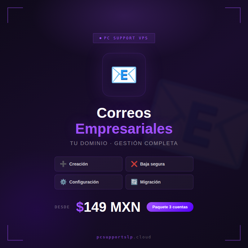 - 📲 Configuración Multi-Dispositivo: Sincronización profesional en Smartphones (iOS/Android), tablets y clientes de escritorio como Microsoft Outlook o Apple Mail.